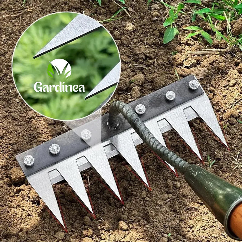 Say goodbye to outdated tools. The Gardinea Rake makes weeding effortless with sharp, reinforced tines that slice through stubborn roots. Whether it’s weeds, dry grass, or compact soil, this rake tackles it all with ease.